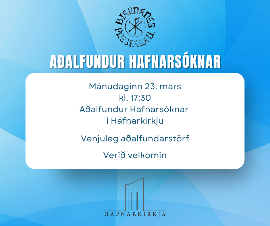 Aðalfundur Hafnarsóknar verður haldainn mánudaginn 23. mars kl. 17:30 í Hafnarkirkju